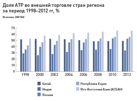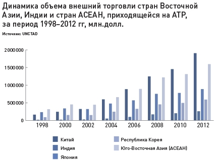 С 2012 года Китай стал третьим инвестором в мире, в то время как его восточный сосед, Япония, остается вторым в течение многих лет. Китайские инвестиции в 2013 году увеличились на 15%, японские – на 10%, в то время как американские (первое место в мире) упали на 8%. Кроме того, в 2013 году впервые в своей истории страны Юго-Восточной Азии привлекли больше прямых иностранных инвестиций, чем Китай. В основном это происходит из-за постепенного перевода производств, требующих больших затрат энергии, воды и труда, из наиболее развитых провинций Китая в менее развитые районы Азии. Ежегодные темпы роста китайских инвестиций в страны АСЕАН с 2010 года составили порядка 30%, что значительно выше, чем в другие регионы. В среднесрочной перспективе мы можем ожидать, что этот процесс получит массовый характер. Таким образом, в плане инвестиций регион становится азиатско-ориентированным даже быстрее, чем непосредственно в сфере торговли.