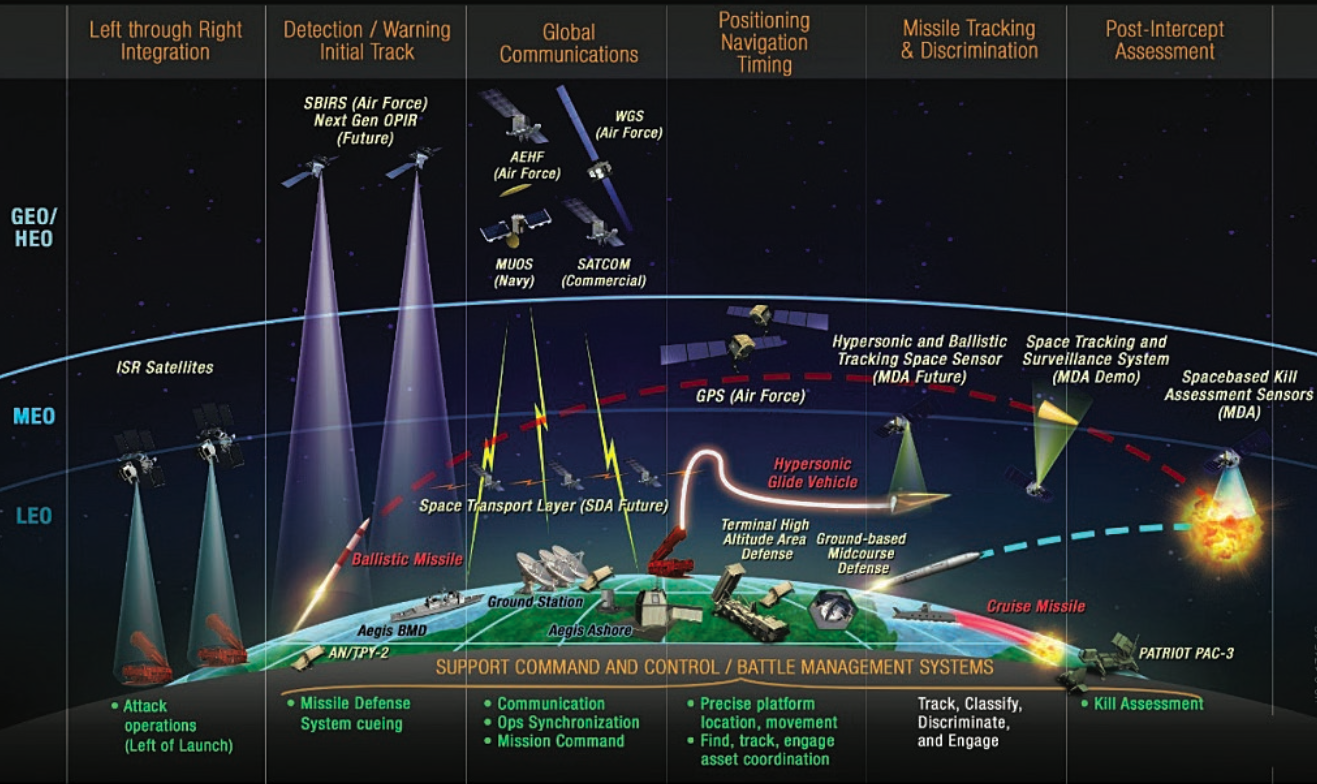 Наиболее неприятным сигналом является появление разведывательных спутников в интересах ударных операций в рамках «нулевого эшелона» противоракетной обороны США на схеме (рис.1), представленной в обзоре бюджетного запроса Агентства по ПРО на 2021 фискальный год[15].