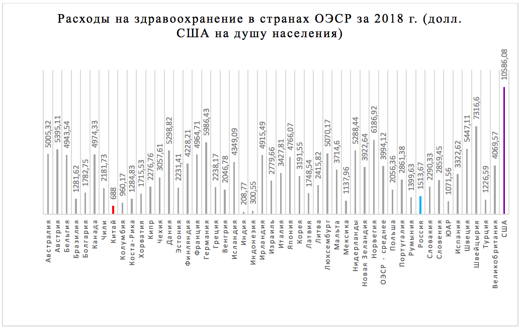 В борьбе с эпидемией важную роль играет не только финансирование, но и решительные ограничительные меры. На середину июня 2020 г. в США от коронавируса умерло около 117 тыс. человек, в России – 7 тыс., в Китае – 4,6 тыс. человек. В то же время, согласно статистике ОЭСР, по расходам на здравоохранение на одного человека в США приходилось более 10 тыс. долл., в то время как в России этот показатель равнялся 1,5 тыс. долл., а в Китае – около 700 долл. При меньших затратах российская и китайская системы общественного здравоохранения справляются с эпидемией эффективнее во многом благодаря централизованной структуре управления (что не отменяет проблему недостаточного финансирования, учитывая общий объём ресурсов). В вопросах охраны здоровья населения российские специалисты компетентны, накоплен богатый опыт борьбы с инфекционными заболеваниями, в том числе благодаря наследию медицины СССР. От Советского Союза России досталась разветвленная система здравоохранения, которая характеризуется высокой степенью централизации. Обязательное медицинское страхование делает доступными базовые медицинские услуги.