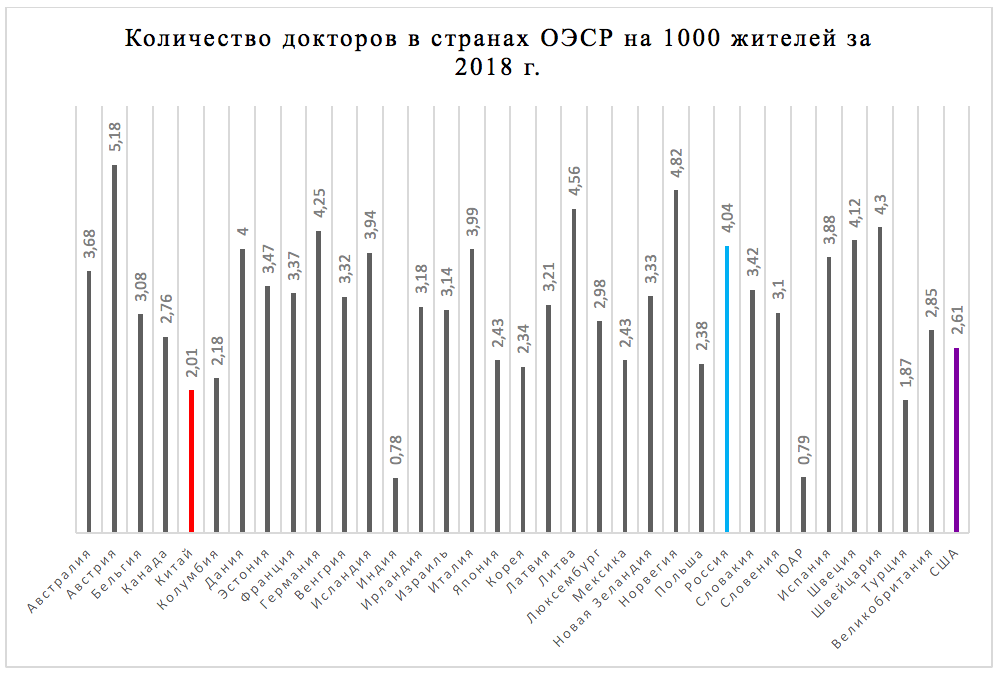 Источник: OECD Data (https://data.oecd.org/healthres/doctors.htm#indicator-chart)