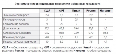 Некоторые базовые экономические и социальные показатели обсуждаемых в данной работе моделей государства суммированы в таблице.
