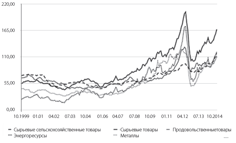 Рисунок 2. Индексы цен на сырьевые товары, 1995–2010 годы