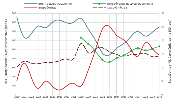 Рисунок 2. Социально-экономические показатели развития США в 1920–1940 годы