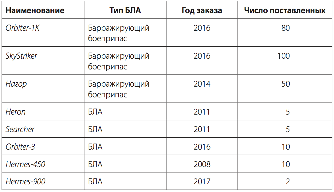 Таблица 1. Закупки Азербайджаном БЛА в Израиле (без учёта лицензионного производства)