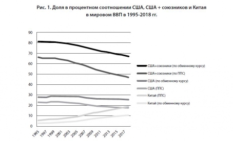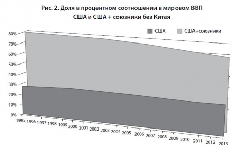 Заявления о конце или скором исчезновении однополярного мира уже стали общим местом. По словам Кристофера Лейна, «система международных отношений переживает переход от однополярного мира. По мере ослабления доминирующей роли США на смену миропорядку, установившемуся после 1945 г., так называемому Pax Americana, придет новый миропорядок, который еще не приобрел конкретных очертаний». Под такими заявлениями подразумевается, что грядут исторические перемены, в результате которых вся система в корне изменится. В реальности все гораздо сложнее. С середины 1990-х гг. доля Соединенных Штатов в мировом ВВП постепенно снижалась. Однако экономический рост Китая и упадок союзников США следует считать гораздо более существенными изменениями.